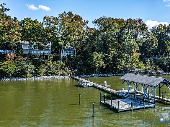 Welcome to this gorgeous home on the Piankatank River, offering wide, breathtaking views, deep water, & the luxuries you dream of in a coastal retreat. This property is designed for the ultimate outdoor lifestyle. Enjoy 7-8’ MLW at the fabulous pier, complete with a large covered boat slip & a 10k lift, multiple sitting areas, water, electricity, & panoramic river views. Spend your days fishing, tubing, cruising, or head out to the open Chesapeake Bay. The screened porch, featuring a bar & full-sized fridge, opens onto a wrap-around waterside deck, perfect for entertaining or relaxing while taking in the view. Inside, the home is oriented to maximize waterfront vistas. The living room boasts a vaulted 2-story ceiling, wood-burning fireplace, & walls of glass & sliders leading to the deck. A formal dining room flows into the kitchen, which features a large island, dry bar, & wood-burning fireplace, creating a warm & inviting atmosphere. The main-floor primary suite is a true retreat with water views, deck access, FP, 2 walk-in closets, & a spacious bathroom with a walk-in shower & jetted tub. A convenient laundry room is just steps away. Upstairs, there are 2 generous waterfront BDRMS, a bonus room, & a full bath, perfect for guests or family. The basement provides additional lounge space with a kitchenette, full bathroom, & ample storage. The 3-bay garage is connected by a breezeway. Ideally located just mins to Piankatank River Golf Course, 10 mins to Deltaville, 25 mins to Gloucester, & about an hour to RVA. Come relax at this waterfront retreat! *Featured Sheet*