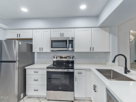 Newly renovated 3 bed, 2.5 bath, 1 fireplace with 1,518 SF townhomes in the desirable Dobson Ranch Community. Easy access to I-60 and 101 Freeway. 10 minutes driving distance to Community college, shopping and restaurants. New interior two tone paint, New carpet and LVP floor, new kitchen white cabinet and quartz counter top, new micro oven, cooking range, kitchen sink, faucet, garbage disposal, new dishwasher, refrigerator, new designer shower wall and tub, medicine cabinets, mirrors and lots of new light fixtures. water heater replaced on May 2024. Move in ready for your new home. Discover the essence of comfortable living in a community that offers comfortable -style amenities, including a public pool and spa and an inviting clubhouse, and lush green landscaping.