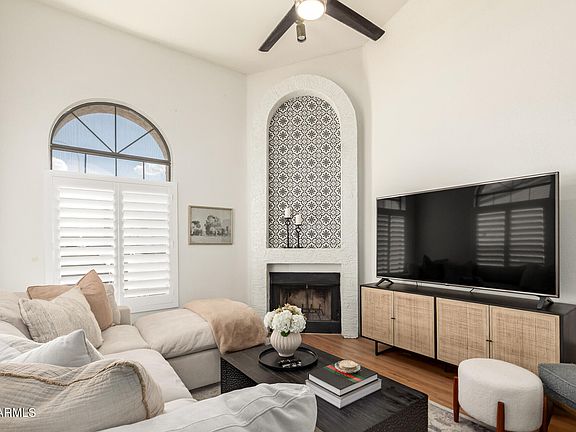 Cozy fireplaceStylish neutral tonesWell-appointed kitchenSeparate shower and tubSoaring ceilingsSubway tile backsplashSs appliances