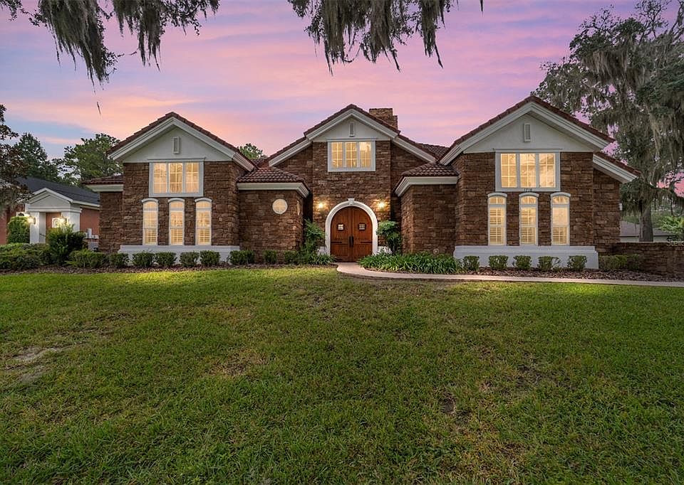 One or more photo(s) has been virtually staged. Welcome Home to 1718 SW 27th Street, Ocala, FL 34471 — located in the highly desirable White Oak Village subdivision. This stunning French Manor–style residence offers 5 bedrooms, 4.5 bathrooms, an office, and a flex room across 4,087 sq. ft. of finished living space (5,440 sq. ft. under roof). Step through the custom wood-arched entry doors into your private courtyard oasis, featuring a spectacular walk-in swimming pool, two-sided fireplace, and a fully equipped entertainment room with double-door access to the great room, dining area, and gourmet kitchen. The soaring two-story great room is filled with natural light and showcases elegant architectural details and an open-concept layout that blends luxury and comfort. The chef’s kitchen features rich wood cabinetry, granite countertops, a spacious island, and stainless-steel appliances. A charming breakfast nook surrounded by built-in cabinetry overlooks the sparkling pool, creating a perfect space for morning coffee. The main-level primary suite includes two walk-in closets and a spa-inspired ensuite with dual vanities, granite countertops, a jetted soaking tub, and a custom glass walk-in shower. French doors provide direct access to the pool and courtyard. A dedicated home office offers inspiring views of the screened pool area, while a flexible layout allows for multiple living and entertaining options. Upstairs, three additional bedrooms each feature private balconies overlooking the property’s serene surroundings. A separate in-law suite with a private entrance ensures comfort and privacy for guests or extended family. The resort-style courtyard is truly an entertainer’s paradise—complete with a newly resurfaced waterfall pool, two brand-new pool pumps (2025), and solar/gas pool heating for year-round enjoyment. Relax by the gas fireplace, unwind in the built-in jacuzzi, or host gatherings in multiple lounging areas. Additional features include built-in ceiling speakers, a formal dining room with bar area, and a spacious garage with an electric vehicle charger for modern convenience. Blending timeless elegance with modern amenities, this exceptional home offers a rare opportunity to enjoy refined living and effortless entertaining in one of Ocala’s most sought-after communities. Residents of the White Oak Village / Cala Hills community enjoy access to a full-amenity clubhouse, fitness center, and tennis courts. Just minutes from shopping, dining and downtown Ocala’s vibrant restaurant scene, with quick access to tranquil outdoor spots like Sholom Park, and approximately 15-minute drive to the renowned World Equestrian Center – Ocala complex, offering upscale dining, shopping, events and resort-style amenities. Schedule your private showing today.