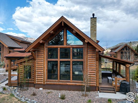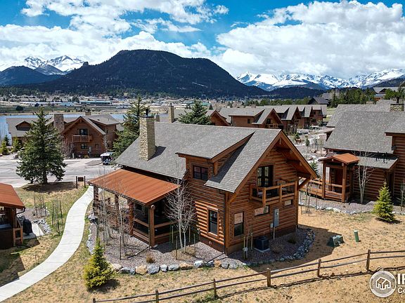Absolutely stunning mountain retreat with breathtaking lake and mountain views from this resort community! This perfectly located luxurious cabin offers the a blend of tranquility and adventure, making it an ideal getaway for families, friends, or savvy investors seeking rental income. Step inside to discover a meticulously designed open floor plan highlighted by magnificent two-story windows framing panoramic mountain vistas. The inviting living area features a cozy two-sided fireplace, seamlessly connecting the great room to the covered porch, creating an ideal space for relaxation and entertainment. Prepare gourmet meals in the fully equipped kitchen boasting upgraded stainless-steel appliances, ample counter space, and a convenient peninsula with sink and prep area, all while soaking in the majestic mountain scenery. The main level hosts a lavish primary suite with a spacious king bed, a 50-inch TV, and a deluxe ensuite bathroom with dual sinks and a walk-in shower. Upstairs, the second primary suite has a private balcony and a luxurious ensuite bath featuring dual sinks and a large walk-in shower. Additional living space is provided in the loft area, perfect for curling up with a book, watching TV, or accommodating extra guests with a pull-out queen bed, all while enjoying the stunning views. Outside, indulge in the ultimate indoor/outdoor living experience on the covered porch featuring an outdoor fireplace, a 6-person hot tub, and a gas grill, perfect for al fresco dining and relaxation. Conveniently located just steps away from a resort with dining and spa amenities, as well as the marina and hiking trails, this cabin offers easy access to all the attractions of downtown Estes, including the free trolley service in the summer. With property management company on site, this cabin presents an excellent investment opportunity for those looking to capitalize on the vacation rental market in this amazing resort community.