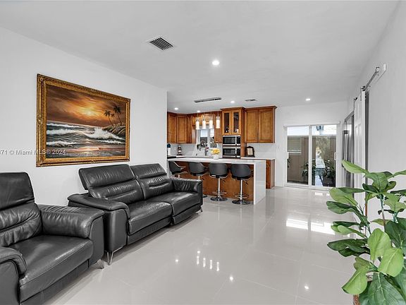 Indulge in the pleasures of SoFlo living within this exquisite residence. Welcome to a stunning modern pool home nestled on a charming corner lot, designed with entertainment in mind. Boasting three bedrooms and a bonus room, this property offers ample space for relaxation and recreation. Step into the heart of the home, where an open kitchen adorned with elegant quartz countertops, an XL kitchen island, double oven, and a spacious refrigerator awaits. With impact windows and doors, a concrete wall fence enveloping the entire property, and an electric gate with 2 entrance, privacy and security are ensured. Outside, discover a secluded yard complete with a heated pool, providing the perfect oasis for leisure and serenity. Modern driveway with space for a boat/trailer and 6 cars
