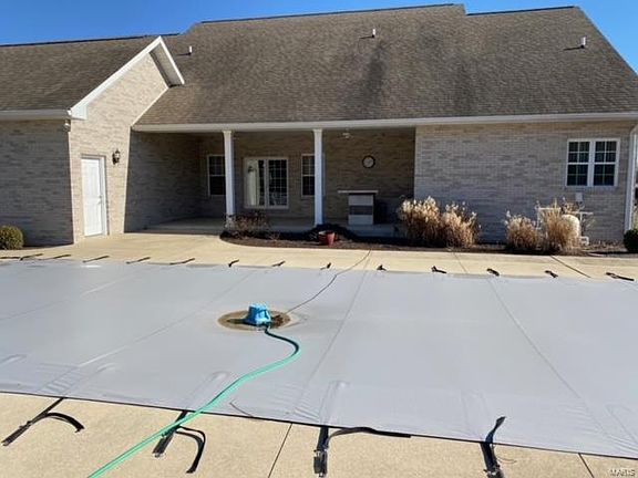 Country living at its finest! 5-acre tract that backs up to some woods and a creek. Built in 2006 this brick home checks all the boxes! Lots of curb appeal, nicely landscaped and concrete drive to an attached 2 car garage. Inside you will find 3 bedrooms, 2.5 baths on main floor, master suite, den, office, foyer, great room. Vaulted ceiling in great room along with French doors leading to a large, covered patio, and a 13' x 24' fiberglass inground pool in the back yard! Main floor laundry, kitchen with breakfast nook and pantry plus lots of large windows giving so much natural light! Full basement has kitchen with bar, large rec room, huge family room and bath! 2 egress windows, lots of storage and stairs to the garage from the basement. Great for entertaining!