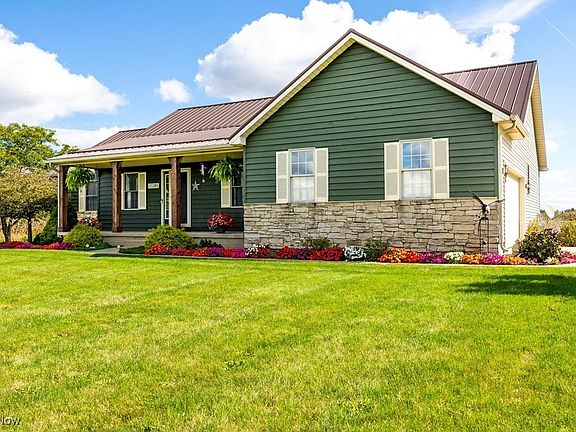 One owner custom built ranch home situated on 2 acres in Lagrange Township. This home features a large great room with cathedral ceiling and fireplace, formal dining room, large eat-in kitchen, 1st floor laundry, split bedroom floor plan with an owners suite with an ensuite bath with a walk in closet. There is an open balcony staircase to a huge basement with lots of room for expanded living area. Updates include a metal roof on the home in 2021, shower and luxury vinyl tile flooring throughout most of the home. Sliding glass door off the kitchen eating area to a multi-level covered patio with a hot tub! Natural gas heat, central air and Anderson Windows. Located in the Keystone School District and just 5 short minutes to 10/480. Call for your tour today!