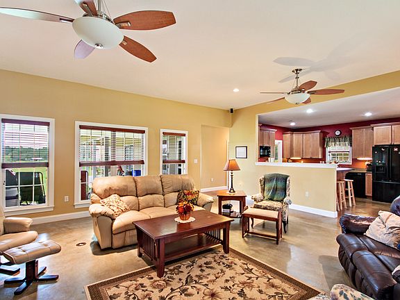 Beautiful, well-kept home on one acre lot with open floor plan; includes workshop, storage building, fully fenced yard and over 1,000sf of covered porches! Updated black kitchen appliances; stained cement floors throughout are easy to maintain; plenty of storage! Convenient country living!