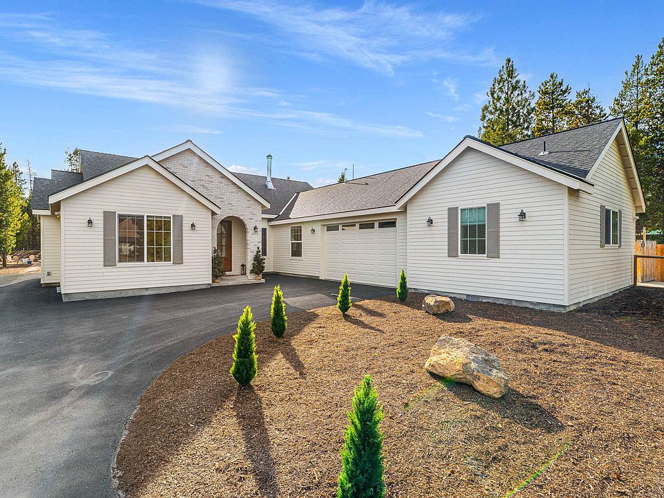 European-inspired single-level custom home on a fully fenced .55 acre lot surrounded by mature pines. Designed with luxury finishes throughout — 3/4-inch white-oak hardwood flooring, solid custom cabinetry, and true marble countertops. The European farmhouse kitchen features brass fixtures, open shelving, and professional-grade appliances that blend style and function. The light-filled great room opens to a large concrete patio, irrigated lawn, and private outdoor living area. Built for longevity with ice-shielded roofing, hardie siding, and a spacious two-car garage with storage. A separate guest apartment offers its own entrance, parking, and laundry, plus kitchenette (no oven) — ideal for guests, family, or rental flexibility. Minutes from Sunriver and Bend, this home embodies craftsmanship, comfort, and refined Central Oregon living.