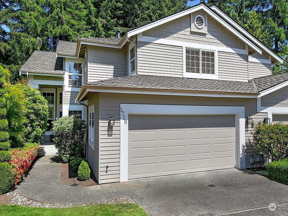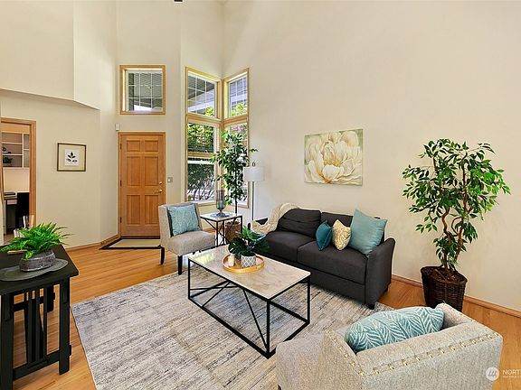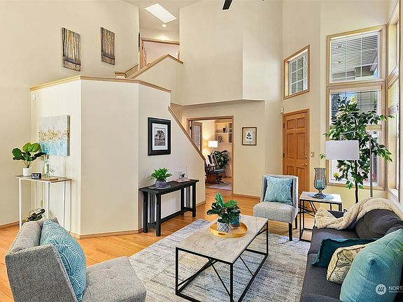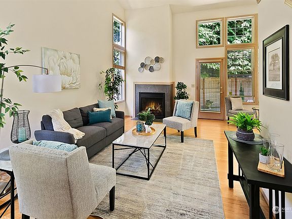Beautiful Mill Creek Town Home in a private setting! Great room with hardwoods, soaring cathedral ceilings and a 5-year-old high efficiency gas fireplace and A/C! Main floor full bath as well as a den/office/guest room. Spacious kitchen with hardwoods, Corian style counters and prep area with storage. Breakfast room with a ceiling of skylights. Primary suite w/vaulted ceilings, hardwood 2 walk-in closets granite tile luxurious tile walk-in shower. 2nd bedroom has a private full bath. Secluded, fenced back yard, perfect for summer get-togethers. Extra storage under the stairs. 2 car garage. Convenient location to Mill Creek Town Center, lots of walking trails!