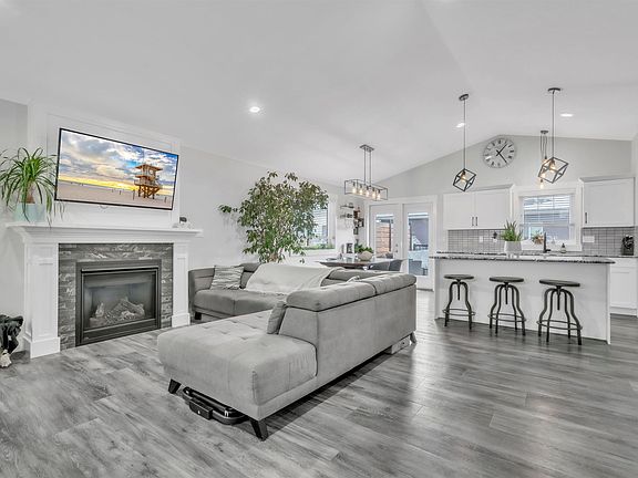 Open-concept layoutPlenty of natural lightGas fireplaceBeautiful white kitchenGas rangeQuartz countertopsLarge island