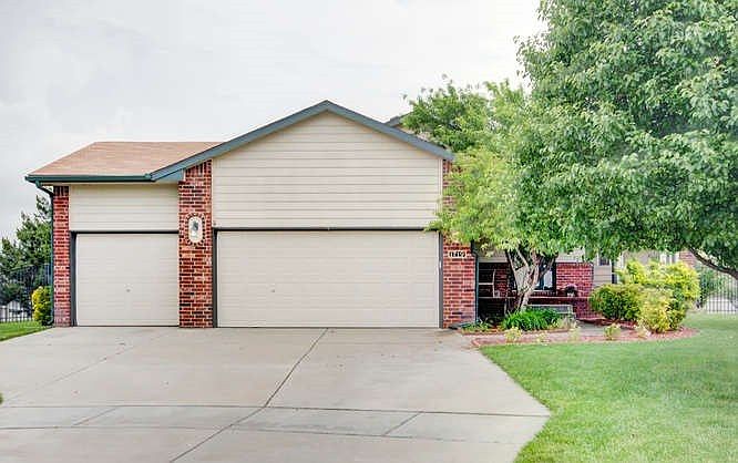 Just what you've been looking for! Beautiful 4 bedroom 3 bathroom home in the desirable Goddard school district. This home is located in a cul-de-sac on an extra large lot that is fenced. You'll notice the lovely landscaping which will be a breeze to maintain thanks to the irrigation well and sprinkler system. The main floor offers brand new wood laminate flooring throughout, an elegant fireplace, 3 bedrooms and an eat in kitchen which is complete with matching appliances that stay with the home. The master bedroom has a private bathroom with a double vanity, Jacuzzi tub and a walk in closet. The view-out basement includes brand new high quality carpet, a generous sized family room, storage area, bathroom and 1 additional bedroom & office. A few more bonuses to this home include a water softener/filtration system and a newer roof. This one won't last long, schedule your private showing today!