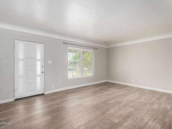 Discover the perfect blend of timeless charm and modern elegance in this captivating Central Phoenix home, just minutes from Downtown! This fully fenced property features an RV gate and parking, plus a detached garage, making it as practical as it is enchanting. Step inside to a sunlit interior with NEW carpet, a soothing neutral palette, chic light fixtures, and stylish wood-look tile flooring. The formal living room welcomes guests with open arms, while the eat-in kitchen steals the show with stainless steel appliances, sleek granite counters, classic white shaker cabinetry, and a center island perfect for culinary creations. The spacious primary bedroom, complete with elegant French doors, offers a walk-in closet and a luxurious full bathroom—a true retreat at the end of the day.