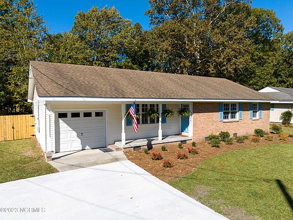 From the exterior landscaping to the interior, this house has been renovated and brought to today's style! 3BR 2 bath brick and vinyl with 2 huge rooms (LR and DR-den area off kitchen). New HVAC, refinished wood floors, all new paint, new appliances, bathrooms updated, new kitchen floor and counters. 1615 square feet of easy living area ranch style convenient to everything! Right down to the new cement driveway and mailbox, you will be able to move right in and enjoy life! One car garage has washer and dryer hook-ups. Outside there is a brick patio and nice back yard to enjoy with some trees and new fencing along one side and front on each side of house.