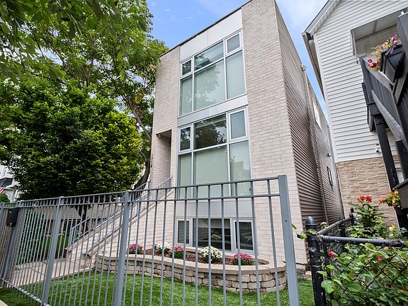 MUST SEE! This bright, modern single-family home is just steps from the 606-trail access point and a short stroll to the vibrant dining scene along Armitage Ave in sought-after Logan Square! Floor-to-ceiling windows flood the open-concept living space with natural light, highlighting gleaming hardwood floors, an updated kitchen and powder room. The second floor features three spacious bedrooms, including a primary suite with two walk-in closets, a spa-like bath with a luxurious soaking tub, and a separate shower. A Jack-and-Jill bathroom connects the second and third bedrooms, with a conveniently located washer/dryer in the hallway. The expansive finished basement boasts a fourth bedroom, and a third full bath-perfect for hosting guests or creating a private retreat. Step outside to a thoughtfully designed backyard oasis, complete with a new pavered patio, eco-friendly turf yard, and ample gardening space-ideal for summer BBQs! A detached two-car garage provides added convenience. Easy access to the Blue Line, CTA buses, Metra, and highways makes commuting a breeze. Don't miss this incredible opportunity!