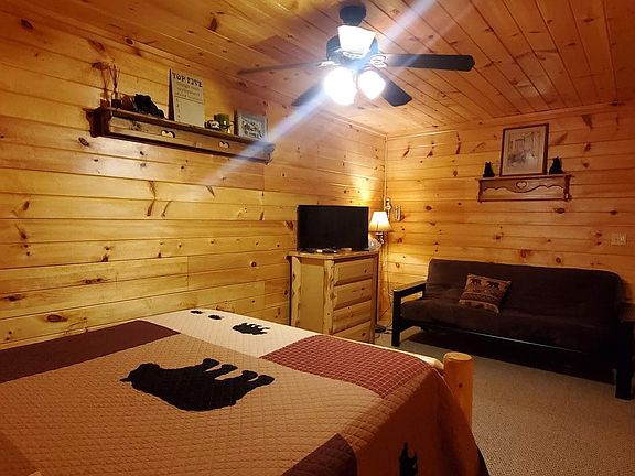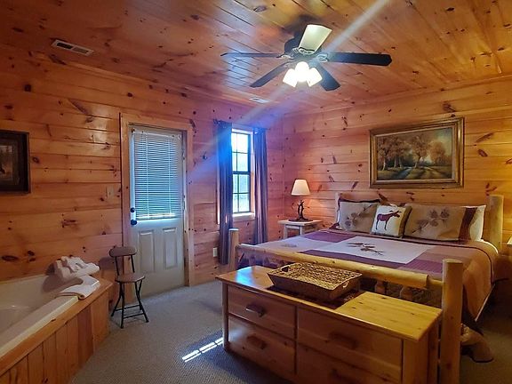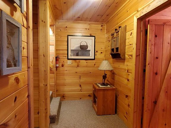 This 2 bedroom 2 bath Cabin has been well maintained, not currently on a rental program. Beautiful community with wide, paved roads. Comes with updated furniture, Fully equipped Kitchen and private back deck with hot tub and outside storage. Two bedrooms, full bath and utility room are on the lower level. . The Master has a private deck and an in room whirlpool tub. The main level has a full bath, game area and great room with beautiful see-thru fireplace,
