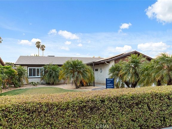 Welcome home to this quaint neighborhood! This remodeled 1333 sq.ft. 3 bedrooms and 2 baths. home with in-ground pool & lattice covered patio awaits late Summer and beautiful Fall days. Stucco exterior with wood accents over the garage. Kitchen features solid surface counter tops, double sinks with soft-close cabinets, Stainless Steal appliances (dishwasher, oven, 5-burner cooktop, micro.) & glass-tile back-splash, overhead lighting. 3-chair bar-seating + dining table area. Solid wood cabinets, tile floor & pass thru window + wide shelf for party serving into the back yard. Both baths are 3/4 with Corian counters. Main rooms with ceiling fan / light combo units. Crown molding throughout + Plantation shutters. Ample size & cozy living room, with gas fireplace. Entire house is laminate flooring except kitchen which is tile. Primary bedroom has mirrored closet doors. Double front doors. 2-car garage with laundry located in the garage. Outside is attractive & easy to maintain large, flat, grass front yard for play area; side yard in pavers, tall privacy fence.