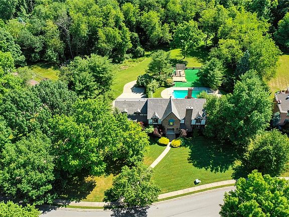 Fabulous home on one of the largest lots in the desirable Sturbridge neighborhood! Over an acre! Beautiful hardwood floors. Spacious rooms with great layout & flow. The kitchen & family room overlook a wonderful rear yard that features a salt water gunite pool with secure trampoline cover, expansive patios & fenced yard. The living & family rooms have wood burning fireplaces with gas starters. A 3-car integral garage & mud room are just off the kitchen. The 2nd floor master en-suite features several areas that could be used as a bedroom, sitting room, dressing room &/or home offices, as well as a balcony that overlooks the rear yard. Four additional bedrooms and two more full baths complete the second floor. The finished lower level with wet bar is great for entertaining. A detached, heated garage with a full bath can accommodate up to 6 more cars, or could make a great art studio or exercise area. North Allegheny schools. Only 20 minutes to Downtown Pgh & 30 minutes to the airport!