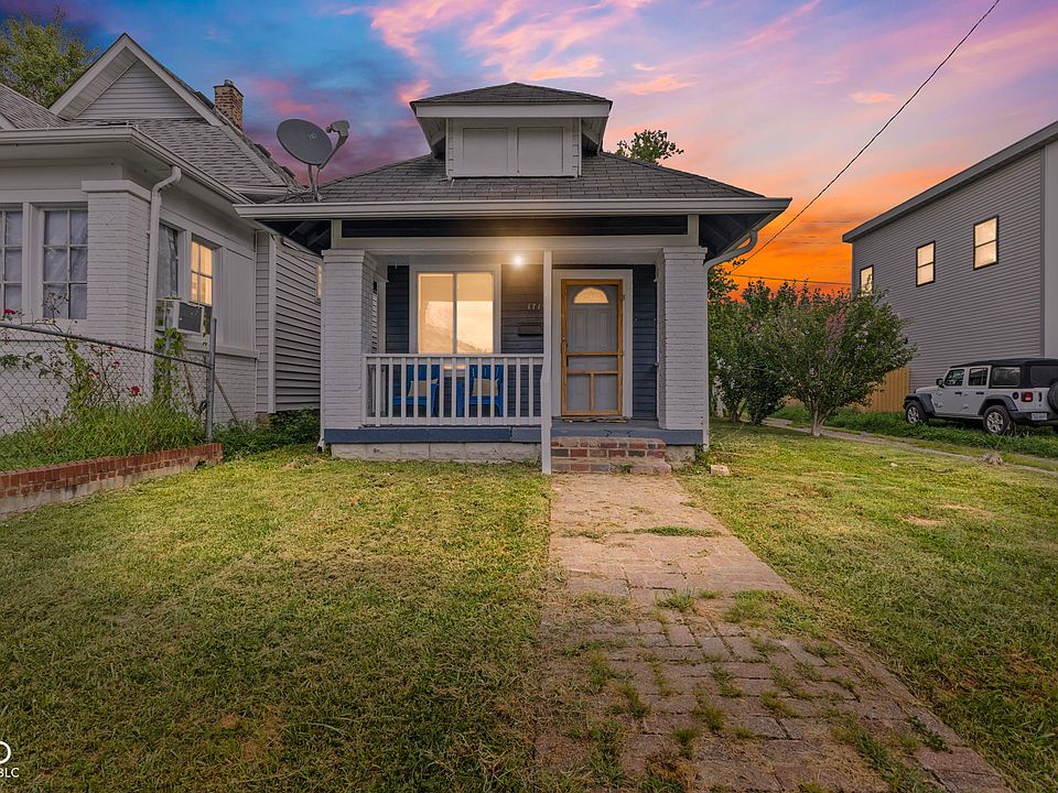 This updated 2 bed/1 bathroom home features white vinyl windows, fresh interior and exterior paint, newer luxury vinyl plank flooring, hardwood floors in the bedrooms and a fully remodeled bathroom with a beautiful tiled shower. The water heater and AC unit are newer, too! Features like the welcoming covered front porch, fully fenced backyard, central air, spacious bedrooms, and interior updates make this a great home for a first-time buyer or someone looking to downsize into a manageable ranch. Plus, enjoy the benefits of being located on a quiet street on the southeast side of Indianapolis near Fountain Square, Garfield Park, and just 10 minutes from Downtown!