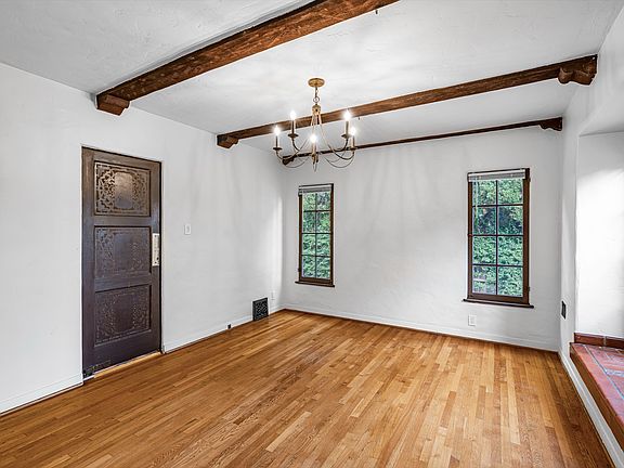 Pull into the driveway and through the gate, welcomed by a true-to-character front door entry. The cathedral ceiling welcomes you into the living room with its wood coffered ceilings and large picture window.