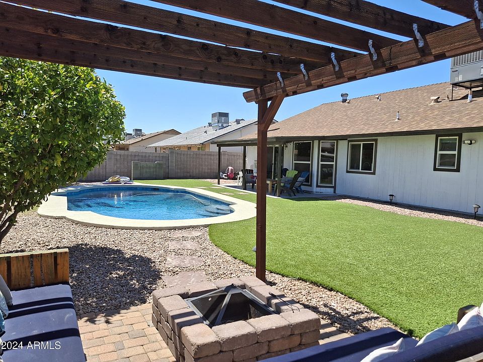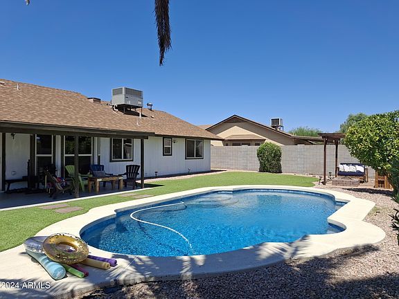 Highly upgraded low maintenance turnkey home! No HOA! Stunning 3 bed 2 bath 2 car garage with newly resurfaced pebble tec pool. Newer AC, Roof, Water Heater. Enjoy all the modern touches throughout the home from tile to granite countertops, custom backsplash, two tone paint, including hotel style remodeled master bath. Energy efficient Block built home with Dual pane windows, ceiling fans, plus N/S facing. Enjoy the low maintenance private backyard, pool, Gazebo and fire pit. Spacious floor plan, large yard, inside laundry. All appliances stay! Convenient Location! Easy access to multiple freeways to get anywhere in the valley. Put this one on your list and you will not be disappointed!
