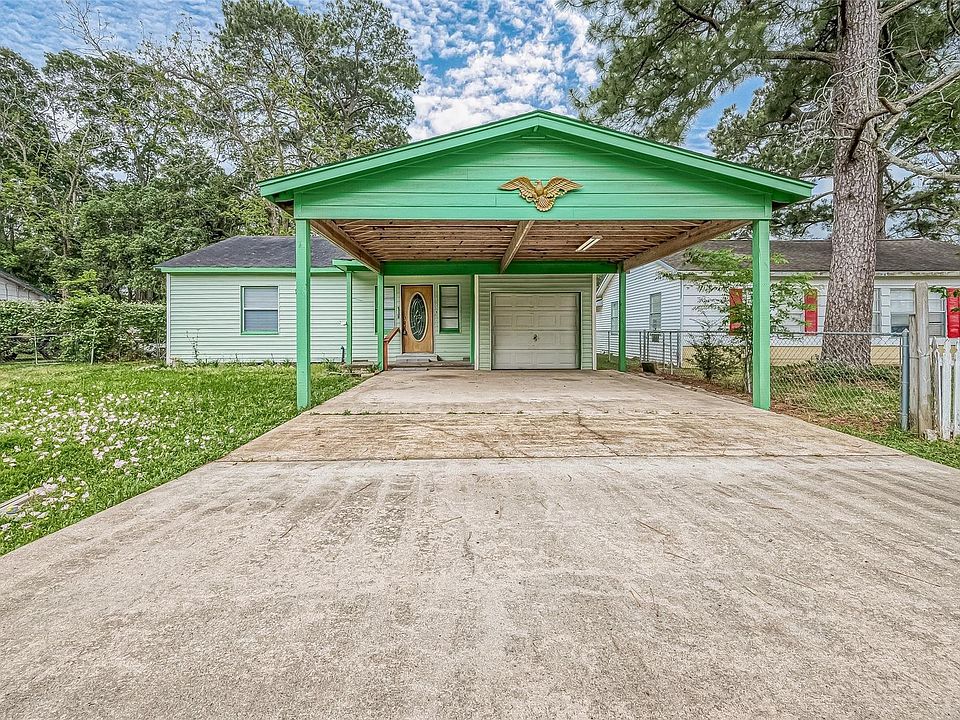 Nice quaint home for a starting household or 1 to 2 people. Needs a little TLC for make it your Dream Home. Lots of cabinet and countertop space and open kitchen to the living room. The home has an open floor plan with good size carpeted bedrooms. Large driveway with 2 car covered carport and one car garage. Front porch and back patio/deck are covered for outdoor events. The back patio has ceiling fan as well as throughout the home in each room. There is a guest room behind the home, previously used as a game room. It can be converted to another bedroom, library/study or storage. Big fenced in backyard for family gatherings or the little ones to play outdoors or for your pets to roam. No HOA fees and in close proximity to schools, shopping, dining and parks. It will not last long, make your appointment today. Dream for INVESTORS.