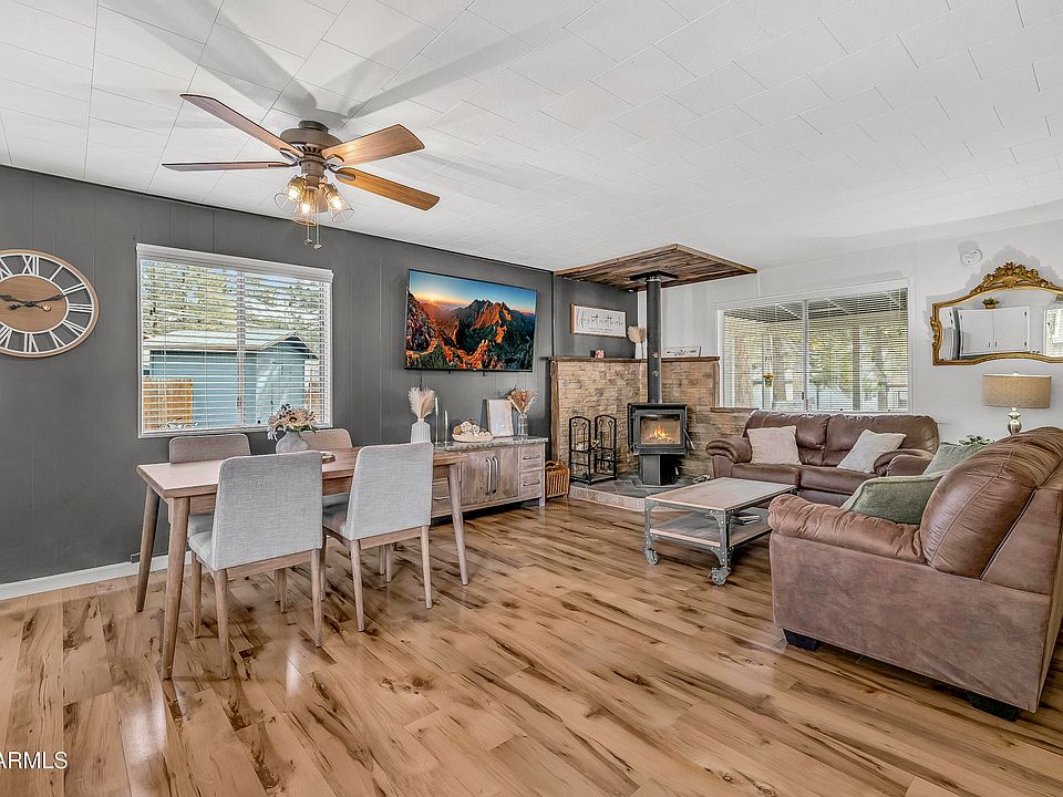 Charming 3-Bed/2-Bath Cabin on an Oversized Cul-de-Sac Lot! This beautifully updated home offers great curb appeal, a spacious landscaped yard, and plenty of outdoor living space. Inside, enjoy modern updates including new flooring, lighting, and plumbing fixtures, plus a converted full bath. The open-concept living, dining, and kitchen area features a cozy wood stove, while recent upgrades to the furnace, roof, and paint ensure peace of mind. Relax on the screened-in front porch, gather around the fire pit, and take advantage of the large storage shed. This place is an absolute must see and a true rare find—don't miss out!