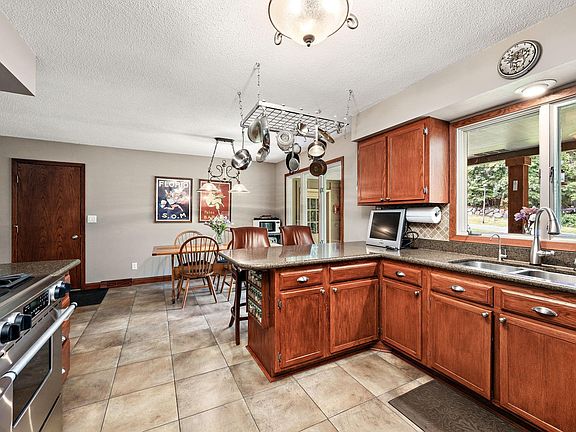 Meticulously maintained Eden Prairie walkout rambler, situated on an amazing 1 acre lot with city convenience and country privacy. Casual style open floor plan with 3 bedrooms on the main level. Kitchen boasts a breakfast bar, Silestone counters, tile floor, 9' ceiling and walkout to deck. Oversized 2 car garage on top, full garage underneath with single door - great work shop. Private well for irrigation.