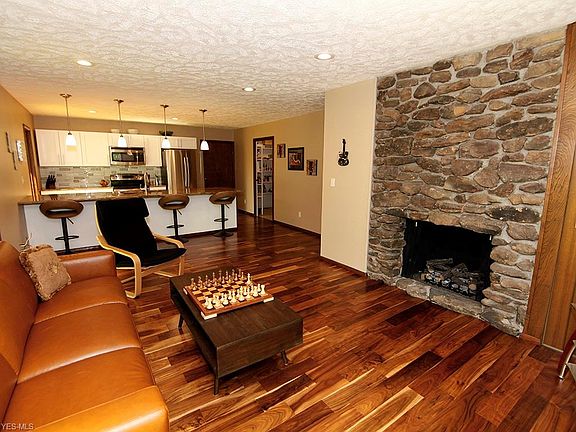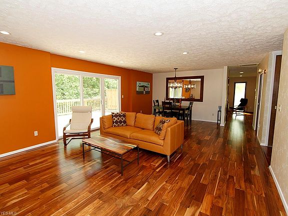 Welcome to 17191 Ridge Creek Rd. where you will find the quintessential Mid Century Modern style home! This home has been redesigned with no expense spared! Experience the new build feel with the incredible privacy of the mature wooded area just waiting to be enjoyed from your brand new deck! From the moment you enter the home, the flow of the Acacia wood flooring throughout captivates you! The foyer leads you to a wonderfully open living room drenched with natural lighting and lovely view through a wall of windows with a sliding door to the deck! The exquisitely beautiful kitchen adorned with granite countertops, modern cabinets and stainless appliances provides the perfect entertainment space opening up to the family room with fireplace as well as offering access to the spacious deck and view! You will quickly find your favorite places to enjoy in this home! The large master suite and updated bath provide another access point to the private view and deck! Quickly make your appointment and experience all this home has to offer in the desirable Ledgewood area of Strongsville before this one slips away!