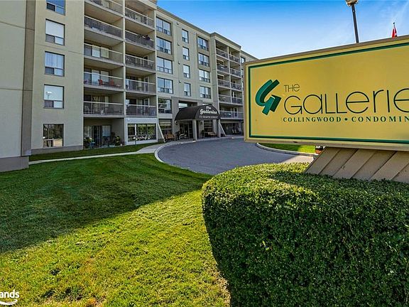 The Galleries is one of Collingwood's most sought after condo developments. It offers much more than other condo buildings in the town, including: a live-in manager; underground parking; fitness area; overnight guest suite; community room and library; in building mailboxes, landscaped grounds; storage unit; inviting lobby area and outdoor sitting areas. Unit 507 is a two bedroom, one bath condo with a large balcony and southern exposure. It is being offered for sale with all appliances included. Both the primary and second bedrooms are quite large and have large closets. The unit has its own laundry facilities. The condo fees include heat and air conditioning, water and sewer charges and use of all the amenities in the building. This unit has one dedicated underground parking space and a storage unit. The town bus route is convenietly located nearby. The Galleries is a wonderful place to call home!