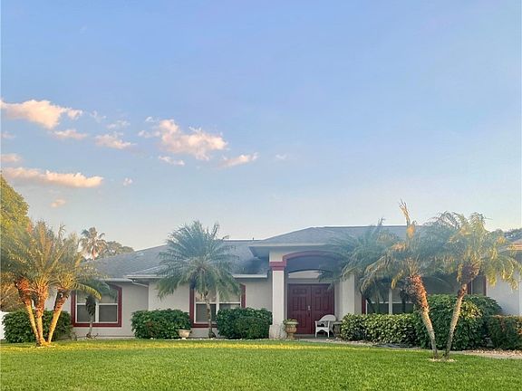 Stunning 4 bedroom 3 bath home and office nestled in a desirable Sebastian Highland neighborhood with NO HOA. Oversized two car garage with storage cabinets and full screen sliding door for ventilation. Screened pool with 8 foot concrete privacy wall. 2 Storage Sheds for all the extras. Huge Entertainment room with pool table included! 4th bedroom has private entry. Lawn irrigation on well system. Two driveways add to the amazing features in this home! New pool heater installed 2024. Roof approx. 4 years old. Huge walk-in closet/pantry off kitchen.