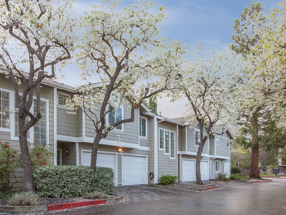 Bright, spacious Townhome with soaring vaulted ceilings in great room that opens to second floor, on a quiet, tree-lined street in excellent MV location! Central heat & A/C, controlled by dual-zoned Nest system including doorbell, alarm & smoke detectors, eat-in kitchen with granite counters, gas stove and attached 2 car garage with extra storage space. Additional, unreserved parking space in common area and on Ada Ave. New windows in living room offers a beautiful view of large, paver patio with shade trees and irrigated gardens. Powder room downstairs. Upstairs, large primary suite with vaulted ceiling and walk-in closet, 2 additional bedrooms, 2 full baths both with contemporary remodels and a convenient laundry closet. Vargas Elementary School. This small, well-maintained complex is a self-managed HOA and close to 7 Google Offices, LinkedIn, Microsoft, Stevens Creek Trail, Light Rail & Caltrain as well as the shops and restaurants on Castro Street.