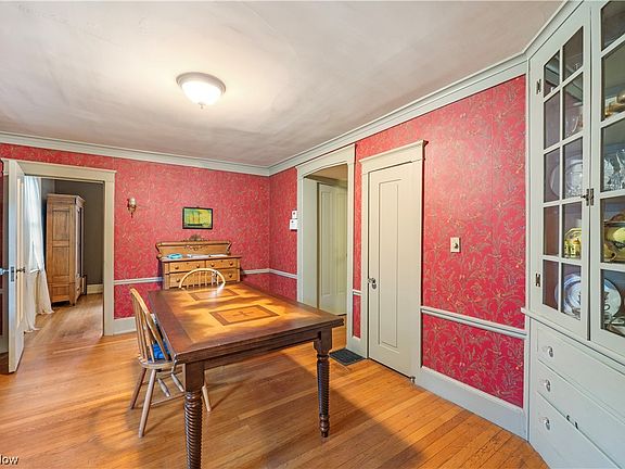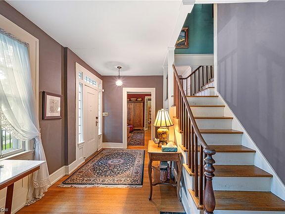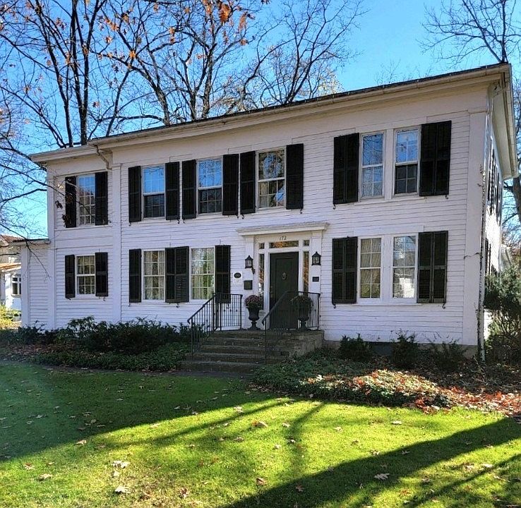 This historic built Greek Revival style home is located in the Heart of Hudson and has privacy and easy access to all that Hudson offers. Originally built in 1877, the home has four bedrooms, 2.5 baths and nearly 3,130 sq. Ft of living space. Situated on a large, this home has a mid-century charm with warm, rich hard wood floors, tall ceilings, and custom detailing throughout the first and second floors. The inviting foyer opens to a spacious living room with one of the homes three fireplaces and adjoins the office addition that was later added. French doors in the office area leads to the stone patio with wonderful views of the private yard area. The formal dining room with built-in cabinets leads to the inviting kitchen with a Viking stove and other stainless-steel appliances. Enjoy family gatherings in the family room, with a wall of windows overlooking the wooded backyard. A laundry room and powder room complete the first floor. The second floor has three spacious bedrooms that share an undated guest bath. Notice the bonus room off one bedroom, perfect for a private office or playroom. The owner’s suite has its own ensuite bath area which was part of the addition to the home. The lower level offers plenty of storage areas. The two-car detached garage and brick patio overlook the deep rear yard. Enjoy living in this one-of-a-kind historic treasure close to the WRA campus and the shops and restaurants of downtown Hudson.
