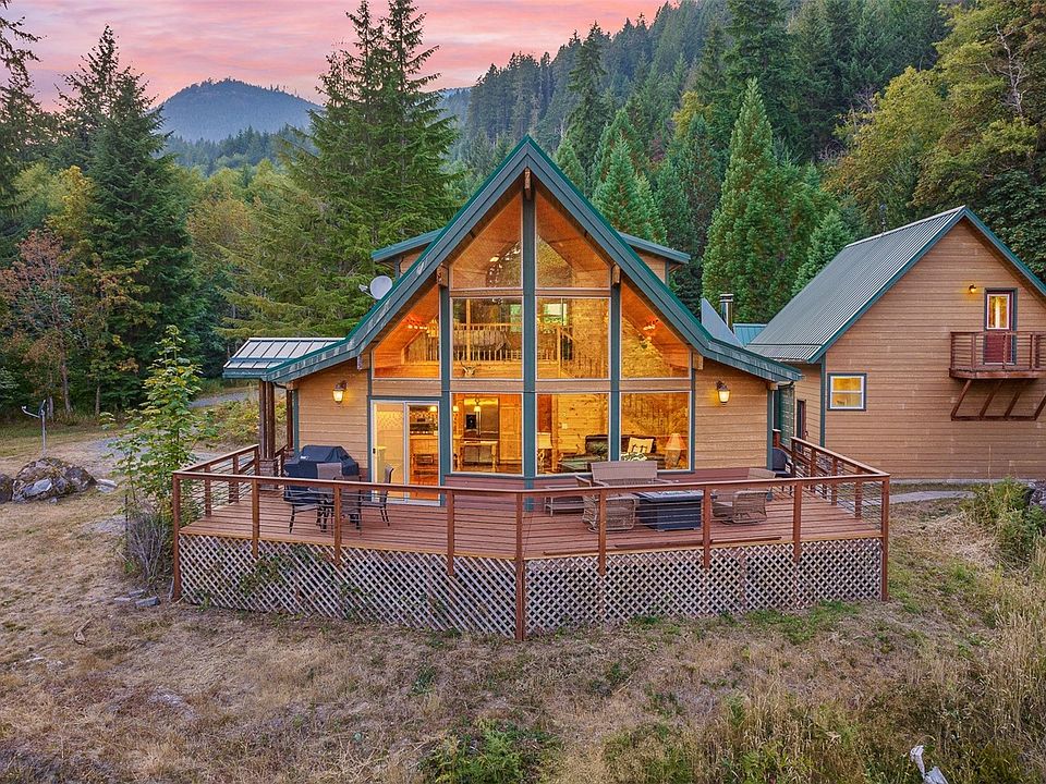 Escape to your dream White Pass retreat! Nestled on 20 acres that seamlessly blend w/ thousands of acres of national forest, it's a haven for nature enthusiasts. Main Cabin boasts a primary suite, 2nd bedroom, oversized mud & laundry room, & a light-filled living room w/ windows from floor to vaulted ceiling. Cozy evenings by the wood stove or relax on a newly surfaced porch & deck w/ new railings. 2 car garage & 1-bed apartment with its own kitchen & living space, your guests will be spoiled. Shed accommodates more toys or tools! Meandering trails wind around the property, guiding you to 2 creeks and connecting you to the endless adventures of the adjacent national forest. Immerse yourself in hiking, hunting, & fishing- all just steps away