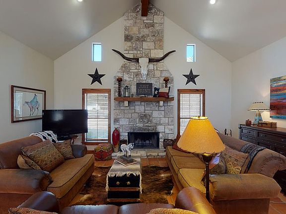 As you pull into the circular drive you see this spacious two bedroom, 2 bath country rock cottage with Guadalupe River access in Hunt, TX. Open living, dining and kitchen with wood burning rock fireplace. Enjoy a morning cup of coffee on the covered front porch and the evenings watching the sunset from the rear deck. Privacy fenced hot tub off of master bedroom. High ceilings, tile and carpet flooring, eating bar between kitchen and living areas. Decorator touches throughout. Would be perfect weekend retreat or full time home. Most furnishings available with acceptable offer. Enjoy the clear waters of the Guadalupe River for kayaking swimming or fishing.