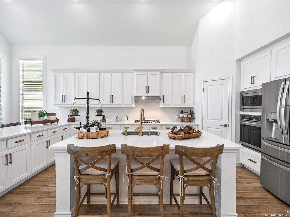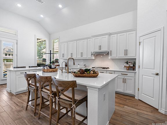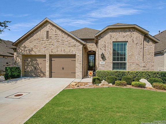 ***Open House Sunday Oct 5th 1 - 3pm*** Styled like a Pottery Barn magazine, this one-story residence in the gated Ranches at Creekside is 2,248 sq ft, with four bedrooms and three full bathrooms, and a dedicated office. Light wood look tile floors, crisp white cabinetry with brass hardware, plantation shutters, and new lighting fixtures make this house a home. The kitchen's clever layout offers an L-shaped island plus a second island for double the seating. So many upgrades, you'll have to see in person! A few are year-round lighting, a RO system, and a water softener. The very flat backyard is perfectly suited for a future pool. Located in Boerne ISD and just minutes from Main Street and La Cantera, the Ranches at Creekside does not have a MUD tax. *Buyer to pay a one-time $500 working capital fee at closing.