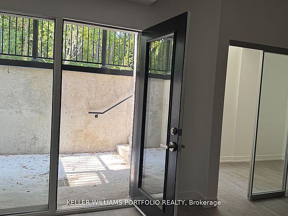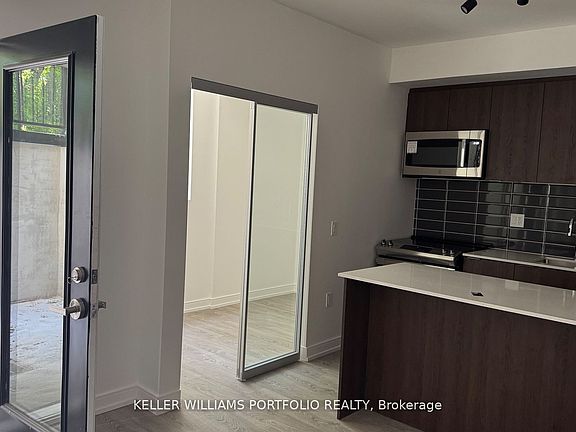 Newly built condo complex. This bright 1 + 1 Bedroom unit looks onto the forested area on Clonmore. Suitable for a couple. Open Concept Kitchen and living area with a patio out front. The den is bright and perfect as a working space with a sliding door. Parking and Locker included.