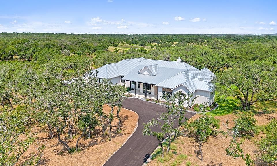 Hill Country contemporary with understated elegance built for entertaining, comfort and privacy. Brand new construction on 5.17 acres within the prestigious 464 Ranch subdivision. Upon entry your eye will be drawn to the vast windows & doors showcasing tranquil views of nature throughout the space. The kitchen features all Thermador appliances, ice maker, wine/beverage refrigerator, custom cabinetry, large chef's pantry & wet bar. The living room features 14' tall ceilings and wood/gas burning fireplace. The primary suite features a spa-like bathroom with dual vanities, shower enclosure and soaking tub that overlooks the countryside right outside the large picture window. The primary closet commands bragging rights with its opulent size and custom cabinetry. Other features include 3 guest bedrooms, 2.5 guest bathrooms, massive laundry room, mud room, office/playroom and 3-car garage. Spacious front & back porch, white oak hardwood floors, luxury European tile, quartzite & quartz counters, Quaker exterior doors & windows, all solid core interior doors, and 10'-11' ceilings in all non-living areas. With its beautiful gated entry, 464 Ranch is a large lot ranchette subdivision that is intended to feel like living on a large trophy ranch. Located 3 mi. north of downtown Johnson City and 1-hour from Austin & San Antonio, the project is high fenced, includes exotic wildlife, and an in-place wildlife tax exemption. Community improvements include buried utilities, high speed fiber internet, asphalt roads, 7-acre community park, and 2-mile hike & bike trail.