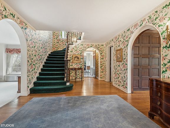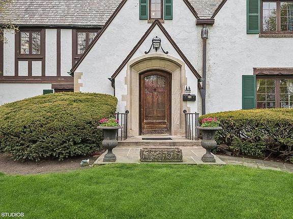 Situated on one of Winnetka's most coveted streets, this beautiful 1928 English Manor Tudor Home is nestled on just under an acre on rolling grassy lawns and beneath a canopy of beautiful trees. High ceilings, beautiful foyer, arched doorways, stunning millwork, wood paneled dining room are some of the architectural details in this gracious home. Great flow throughout the first floor including a large family room, lovely eat-in kitchen nook and butler's pantry. The dining room features a wood burning fireplace and the original wood paneling is incredible. The spacious and bright living room and office overlook the picturesque grounds. Four large bedrooms on the second floor include a lovely primary suite and two additional full bathrooms. A finished attic space with opportunity to expand. The basement offers an additional family room. Large detached 3 car garage with storage. Phenomenal opportunity to update the vintage home of your dreams in this beautiful classic setting on Dewindt's Private Road - first home built on Dewindt, sellers are the third owners. It's a forever location, close to everything - town, train, shops, restaurants and schools. Come see for yourself!
