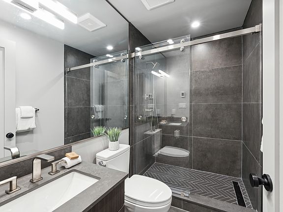 Sleek finishesRooftop deckExpansive warehouse-style floor-to-ceiling windowsModern bathroomsModern eleganceNatural lightIndustrial design