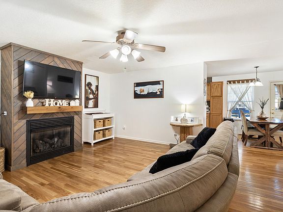 Beautiful fireplaceWalk-in tile showerLarge lotShiplap and mantleKitchen and dining roomAbundance of storage