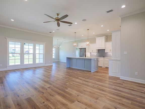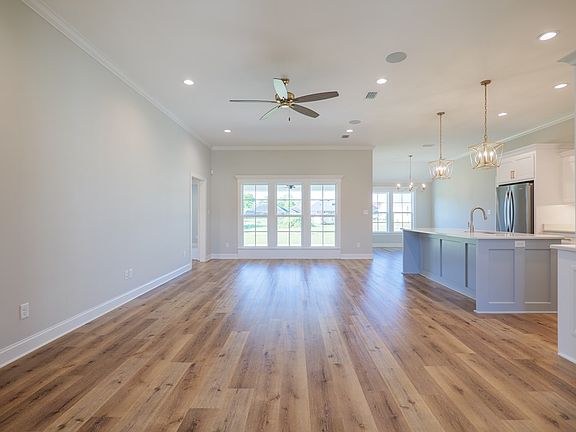 Discover this stunning new construction 4BR/3BA home with a 3 car garage in McNeal Estates, Hahira's latest development. The property features LVP flooring in the great room, kitchen, and hallways. The gourmet kitchen is equipped with stainless steel appliances, including a side-by-side refrigerator, granite countertops, and custom cabinets with indirect lighting. Enjoy Bluetooth speakers that connect to your favorite music or podcast. The master bedroom includes a walk-in closet, double vanity, and a large walk-in shower. Each room is fitted with two-inch faux wood blinds. Outside, you'll find a covered patio, a sprinkler system, and a security system. The community offers a pool and play area for residents. Current taxes reflect the lot only. A termite bond and a 1-year builder's warranty are included. Photos are from a previous build and are for reference only to showcase the floor plan, trim, and upgrades.