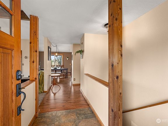 Quality craftsmanship in this beautiful home, with a mountain view! With custom details throughout, there is plenty of room to spread out and relax. Living room boasts a floor to ceiling, rock fireplace and large picture windows. Rustic kitchen opens out onto a wraparound deck, perfect for sunrises and scenic mountain views! Primary bedroom w/ ensuite bath, and a second bedroom round out the main floor. Lower level has a woodburning fireplace in a spacious secondary living room, full wet bar, sauna off of furnace room, a third bedroom, bonus room (possibly 4th bedroom?), and large office. Outside, enjoy the firepit, lighted sidewalk, and the useful sprinkler system. Home is tidy, impeccably designed, and ready to enjoy!