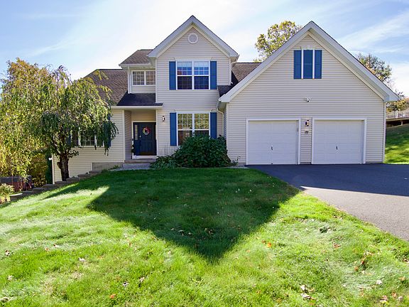 Beautifully maintained Colonial-style home built in 2002, located in the desirable Hillandale neighborhood. This bright, open-concept layout features hardwood floors, soaring ceilings, and a spacious living room with a gas fireplace and large windows. The updated kitchen offers white cabinetry, granite counters, stainless steel appliances, and a center island. Enjoy meals in the elegant dining area or step outside to the deck and private backyard-perfect for entertaining. The primary suite includes vaulted ceilings, a walk-in closet, and an ensuite bath with double vanity. Finished lower level provides extra living space, ideal for a media room or home office. Additional features include central air, a two-car garage, and stylish, modern updates throughout. Convenient to schools, shopping, and parks-move right in and enjoy this stunning home! Contingent upon seller finding suitable housing
