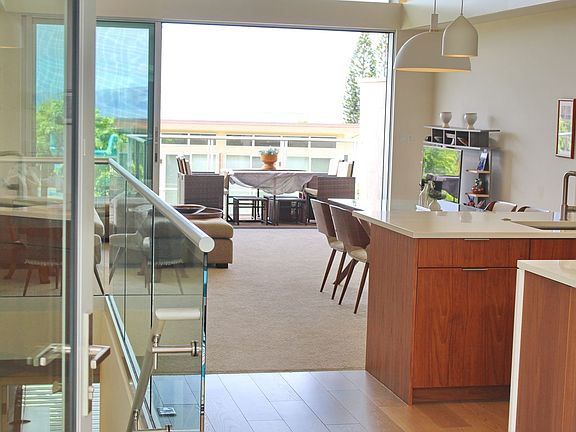 Thoughtfully designed for seamless indoor-outdoor living, this home features a private entry courtyard, expansive lanais, and UV-treated dual-glazed windows. The open-concept layout includes Caesarstone countertops, rich walnut cabinetry, a large stackable washer/dryer, and energy-efficient lighting throughout. The climate-controlled interior includes a state-of-the-art HVAC system to complement Maui's refreshing ocean breezes.