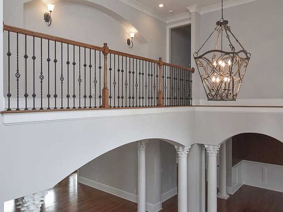 - Great Room: Molding, Bookcase, Floors-Hardwood, Ceilings-Box, Ceilings-High (over 9 Ft), Recessed Lights