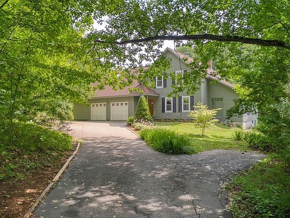 Here you'll find a magical place at the top of a hill, a place where nature abounds and where it's so quiet that you can hear the faint flutter of dragonfly wings. A place where you can lay in bed at night and marvel at moonlit skies & constellations from skylit bedrooms & enjoy morning coffee from the master balcony overlooking sprawling lawns and gardens where deer and turkey roam and where a pair of pileated woodpeckers returns annually to nest. A place where you'll pick blueberries and wild raspberries to the gentle tones of a seasonal brook and the splashing of herons in the spring-fed pond below. The cottage-like home has a grand living room with a stone fireplace opening to a heated light-filled sunroom for 4-season enjoyment. Its recently updated kitchen has a center granite island, stainless apppliances and sweeping views of the naturescape beyond. This 49-acre country property abuts the recently conserved 300-acre Crocker Farm and is close to 2000 acres of wooded trails.