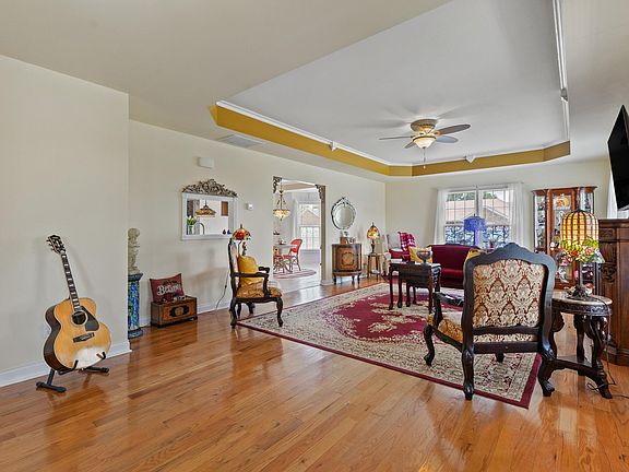 What a lovely home! Updated wood flooring adds to the charm! The split bedroom plan is well designed. Private patio has a motorized awning! Try ceilings set this one apart! Added windows give great visibility to both the living and dining area. The large living room has a fireplace/TV unit that stays. The 2 car garage has a portable AC that stays. The private patio has a screened area plus a motorized awning. The corner lot provided room to enjoy! Under Ground Utilities