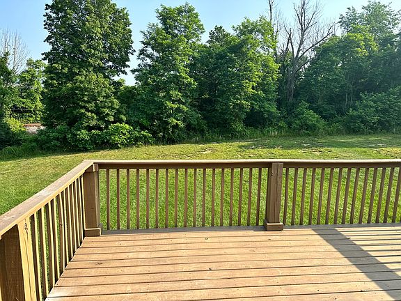 Finished deck overlooking huge backyard and tree-line , and also has electric wired for a hot tub. No neighbors located behind house.