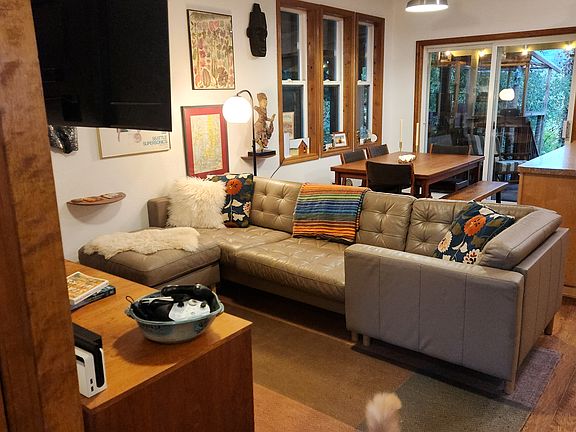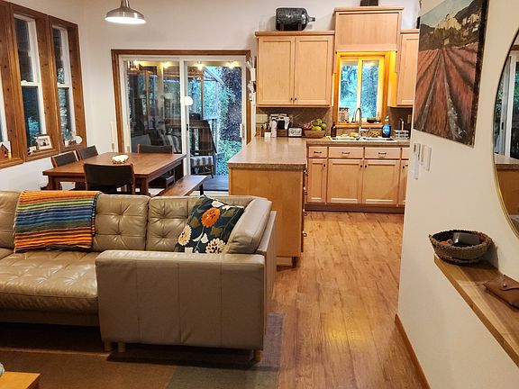 You will find plenty of outdoor area with an acre of useable lawn and garden space tucked away on a dead-end road off Jackson Highway. The circular driveway provides for convenient coming and going. Home features wall to wall LVP with 2 year old washer/dryer, refrigerator, microwave and induction cook top range. Enjoy heating and A/C set to your desired comfort. Vaulted ceilings make this small home feel more expansive. Starlink internet provided. Full sized Murphy bed in main-level bedroom. The home provides for ample amount of storage with two shipping containers and half of a large shop at front of property. Practice your gardening skills with 6 raised beds and an 80 square foot greenhouse. Enjoy the covered back deck while your cat relaxes in a unique catio retreat that features a climbing pole and shelves for your cat to nap and watch wildlife. Please schedule a tour with us and we will email you our rental application after the tour is complete. Owner pays for internet and garbage/recycling, renter pays for electricity and is responsible for glass recycling. Owner is responsible for yard maintenance. 12 month lease Two cats and one small dog allowed Monthly Rent $1,800 Refundable Security Deposit $1,000