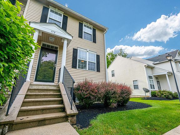 Beautiful end unit with deck overlooking nature preserve! White woodwork throughout, two owner's suites - each with its own full bath! One bedroom has real hardwood flooring! First floor offers an open floor plan with HUGE eat-in kitchen overlooking great room, plus a half bath. Kitchen is fully applianced with walk-in pantry and all white cabinets. Finished lower level has gas fireplace, half bath and unfinished space for even more storage. Community offers two clubhouses, two pools with fitness facilities. Near tons of shopping and dining and easy access to I-270
