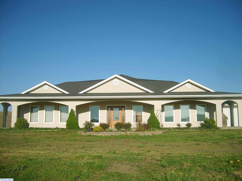 Welcome to your own private Whitman County sanctuary! Home situated on 27.7+/- acres. Stunning views of the rolling hills and evening sunsets. Easy access to hwy, with only a few miles to medical facilities, County seat, schools, parks, and a nice community. The other direction is a 20-30 minute drive to two State Universities. Hunting and boating is also a short drive. Generous floor plan offers 6 bedrooms, and 4 baths. Elegant finishes. Striking hickory floors add warmth and elegance. Lovely master bedroom with walk in closet and bathroom with double sinks. Well designed space, function and detail. Kitchen boasts an extensive island, with seating and plenty of cupboards. Archways from kitchen to living room and french doors leading to family room. Rock fireplace with gas stove. Sliders from family room leading to back yard. Upstairs includes sitting area with bookshelves, 2 bedrooms with adjoining bath. Main floor has an extra room used for sewing. Not only is there an attached 3 car garage, but as you go through the breezeway, you will find another 2+ car garage. 400 amp electrical service. Well provides approximately 100gpm, and septic is 1500 gallon tank. New flooring, other updates and addition to home were added in 2008. Pasture is sub irrigated and ideal for cattle or other livestock. Don't miss this rare opportunity to own this unique property. You may find this ideal for relaxing at days end. For a showing call: CARMEN BRUYA 1-509-553-9494 VIDEO(https://www.youtube.com/watch?v=APNRauxG72E)
