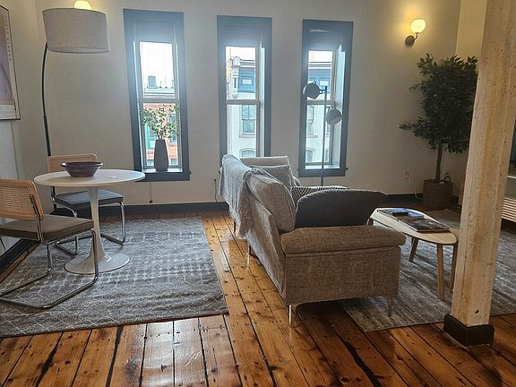Step outside and you're on River Street, in the heart of Troy's walkable downtownhome to the year-round farmers market, local coffee shops, and an established food and music scene. Tara's Kitchen, Fritz Antiques, and NY Disc Golf are right downstairs. Need to commute? Downtown Albany is under 10 minutes away.